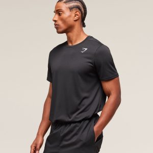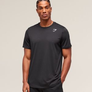 – Regular fit- Lightweight material- Sweat-wicking- Straight hem- Set-in sleeves and crew neck- Heat-sealed Gymshark logo to chest- 100% Polyester– Model is 5’11” and wears a size M– SKU: A2A1J-BBBB