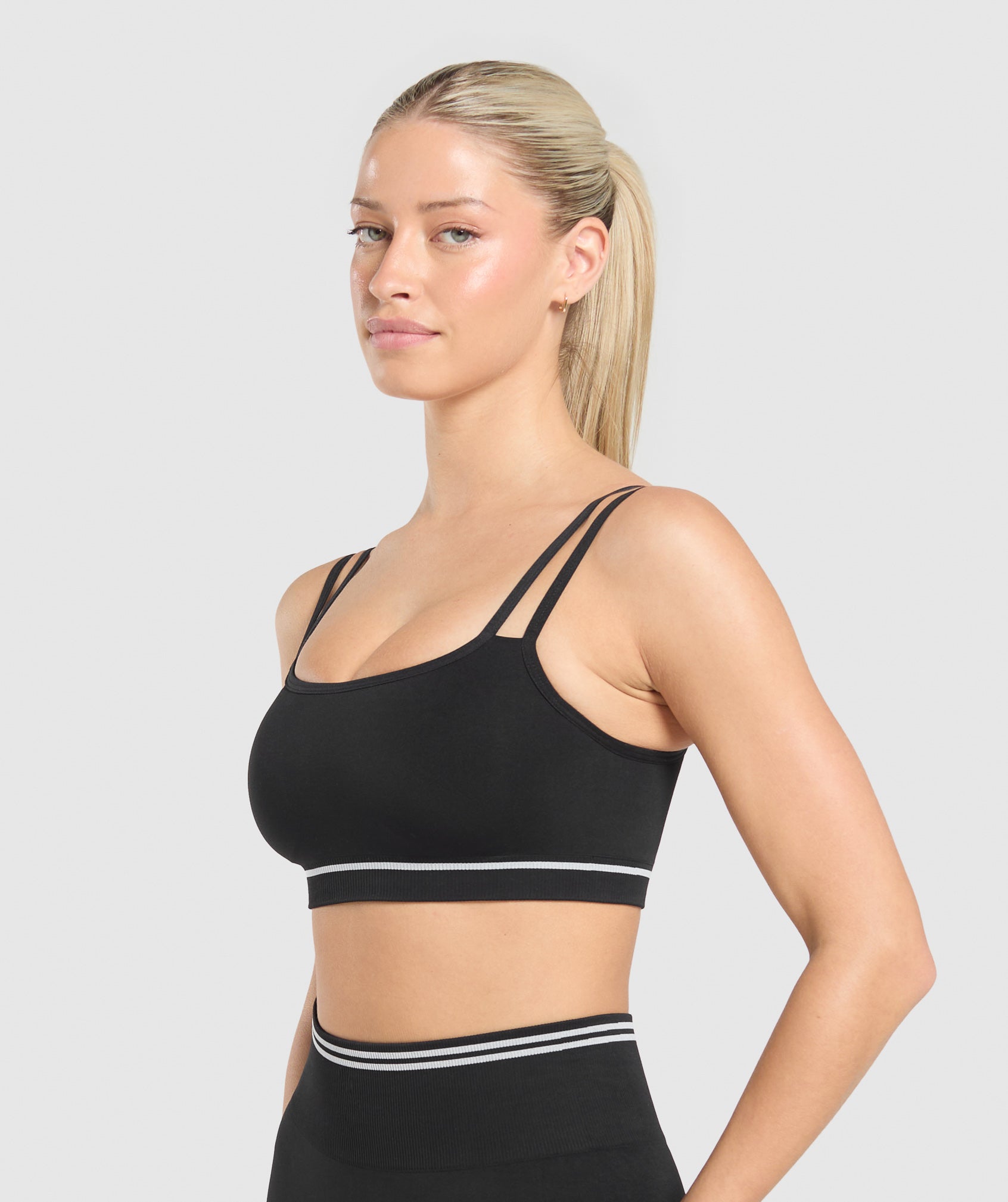 • Contrast piping to take your gym fit up a level • Seamless ribbed hem finish• Doubled layered materials and straps for light support