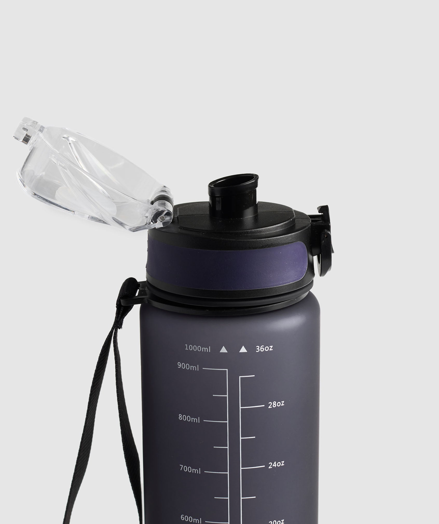 • Wrist strap for easy carrying• Flip lock on the lid to keep it secure• ml/oz markings on the side to keep track of how much you’re drinking