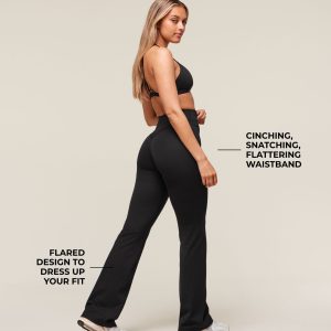 SIZE & FIT• Flared design• High-waisted fit• Regular length• 33” Inseam• Model is 5’7″ and wears a size S MATERIALS & CARE • 78% Nylon, 22% Elastane SKU: B3C8S-BB2J