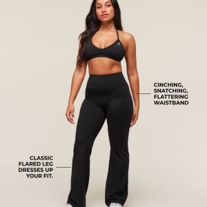 SIZE & FIT• Flared design• High-waisted fit• Short length• 30” Inseam• Model is 5’2″ and wears a size S MATERIALS & CARE • 78% Nylon, 22% Elastane SKU: B4C1S-BB2J